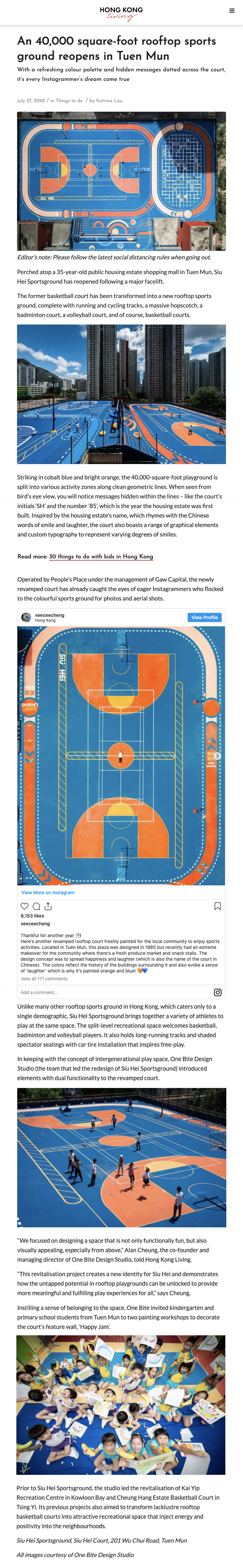 Hong Kong Living | July 2020 Jul 27 Written By Gemma Chan An 40,000 square-foot rooftop sports ground reopens in Tuen Mun Full article here Gemma Chan
