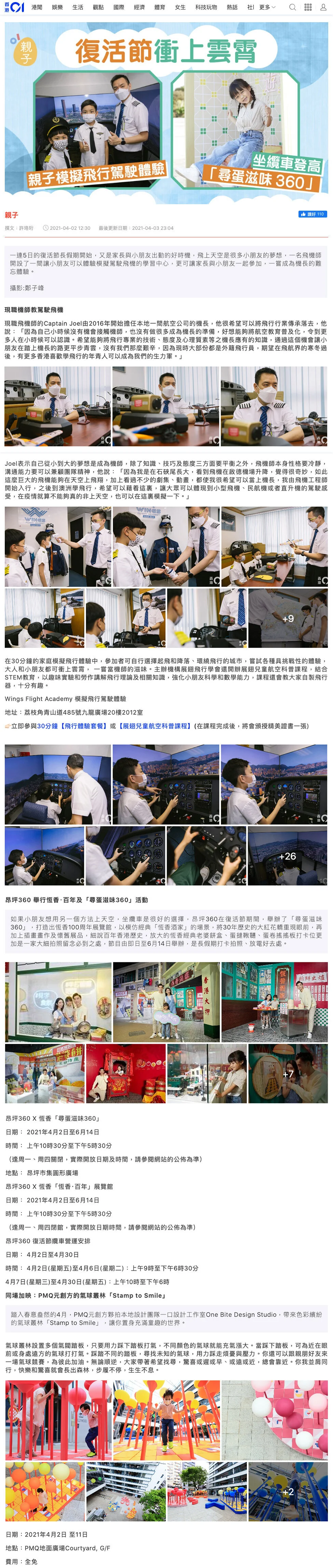 HK01 | Apr 2021 Apr 2 Written By Gemma Chan 復活節好去處|跟機長體驗駕駛飛機 坐纜車登山再入氣球叢林 Full article here Gemma Chan