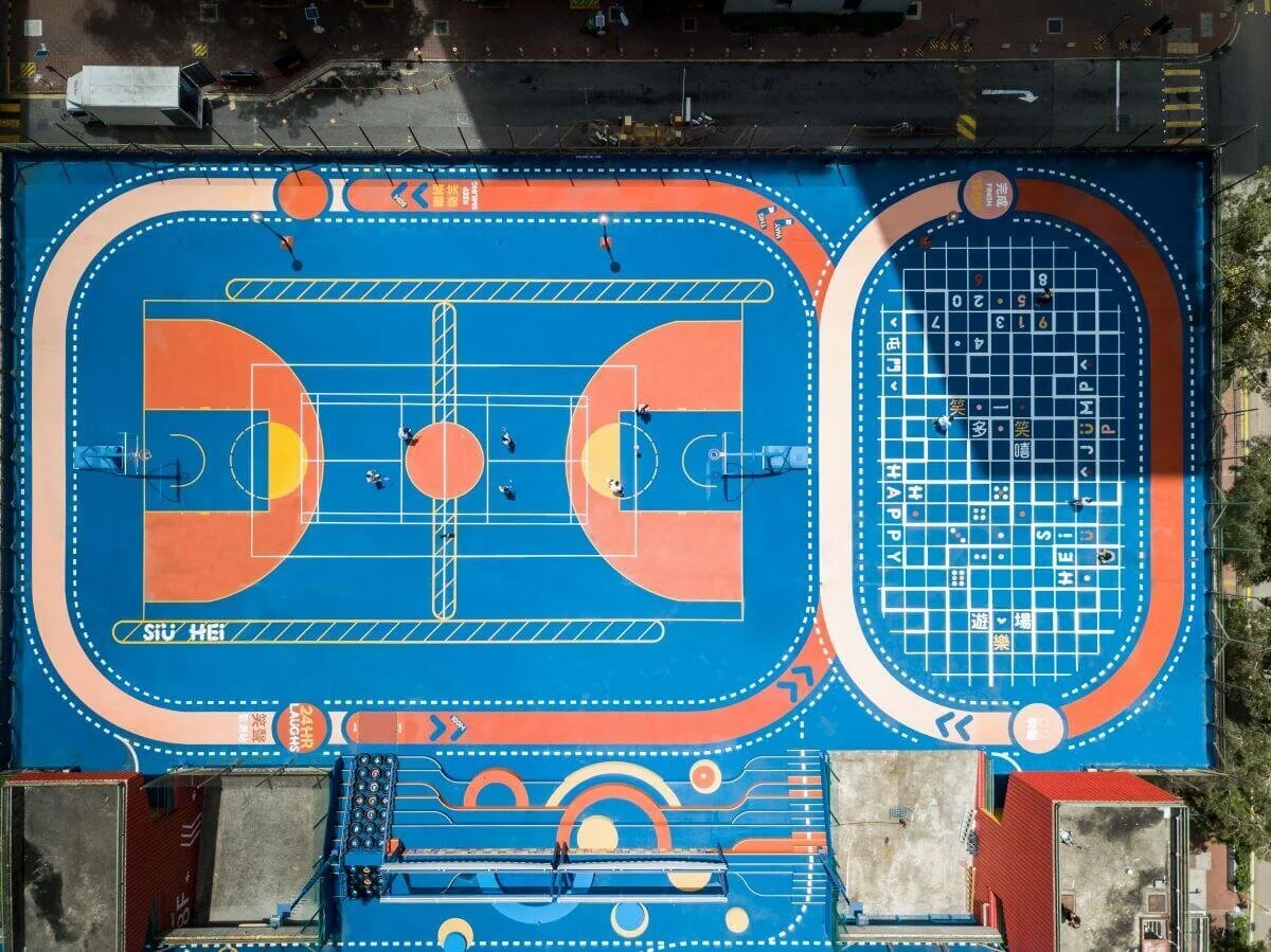 兆禧多功能運動場 繽紛用色線條打破傳統